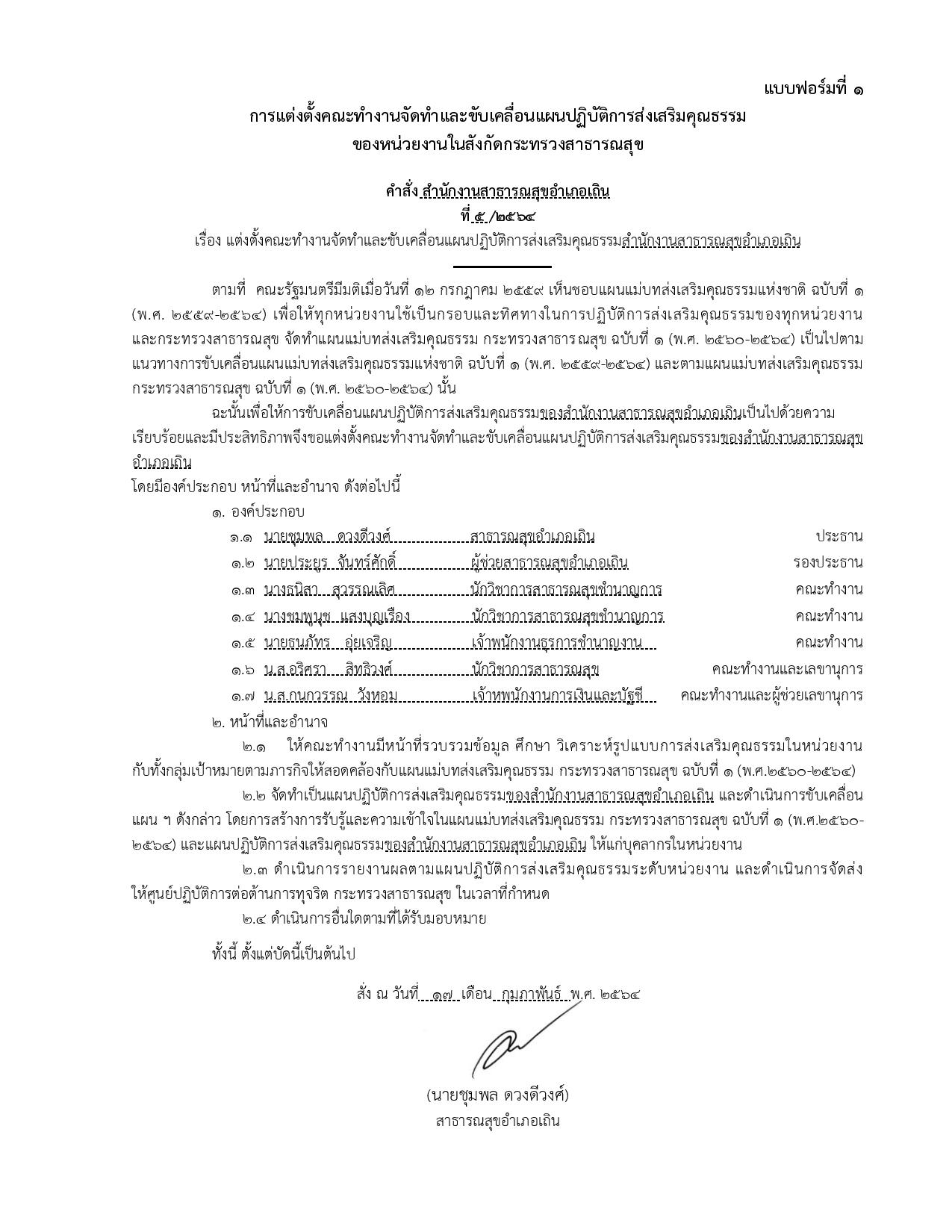ITA2564 EB 17 ข้อ 3.1 คำสั่งแต่งตั้งคณะทำงานขับเคลื่อนชมรมจริยธรรมของหน่วยงาน