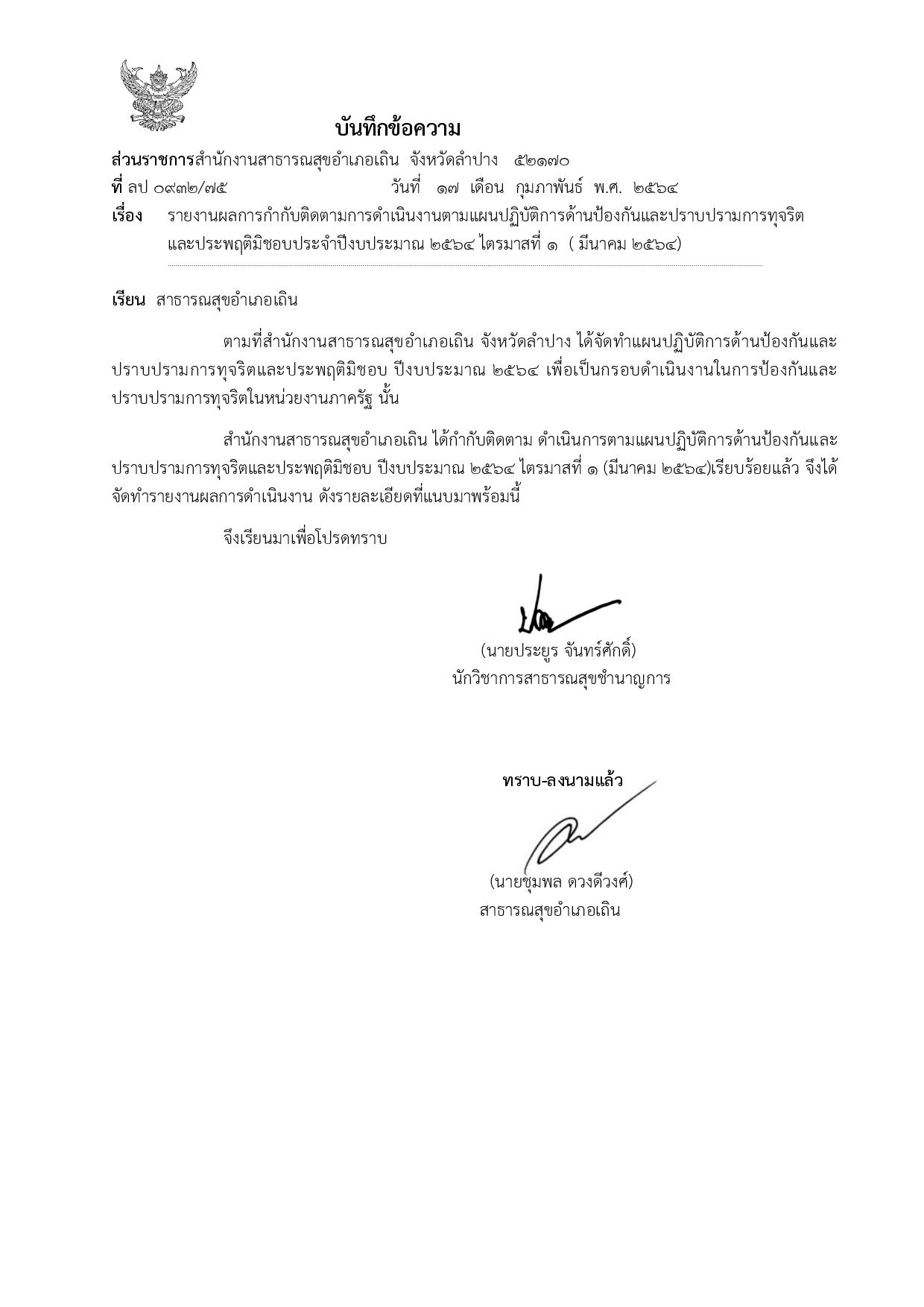 ITA2564 EB 18 ข้อ 1.2 บันทึกข้อความผลการกำกับติดตามการดำเนินงานไตรมาส1-2